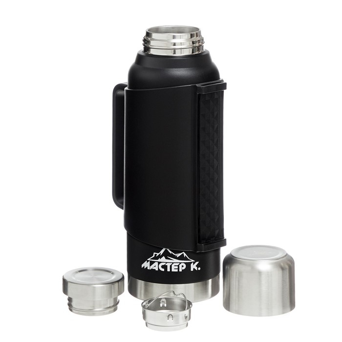Термос, 1.2 л, Движение "Мастер К", сохраняет тепло 48 ч, с кружкой, черный