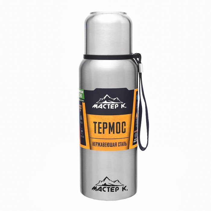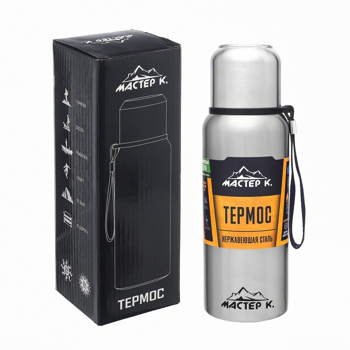 Термос, 600 мл, Путешествие "Мастер К.", с кружкой, сохраняет тепло 24 ч, хром