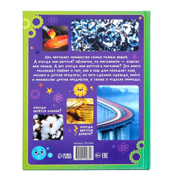 Нас окружает множество самых разных вещей. А откуда они берутся? «Конечно из магазина!» — ответит ваш малыш. А вот откуда они берутся в магазине? Эта книга расскажет ребёнку о том, как в наш дом попадает хлеб, молоко и другие продукты, из чего сделана одежда, книги и множество других предметов, а также о чудесах природы.