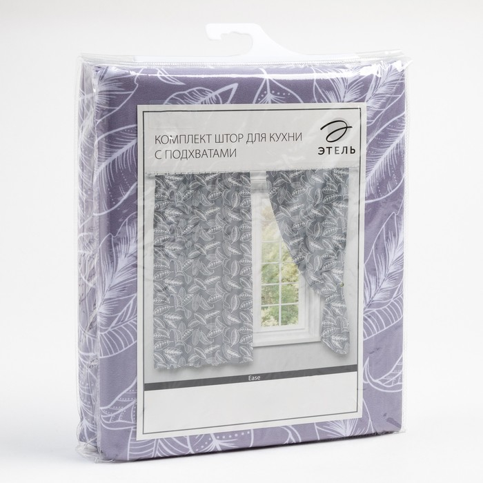 Комплект штор для кухни с подхватами Этель Ease 145х180см-2 шт., 100% п/э