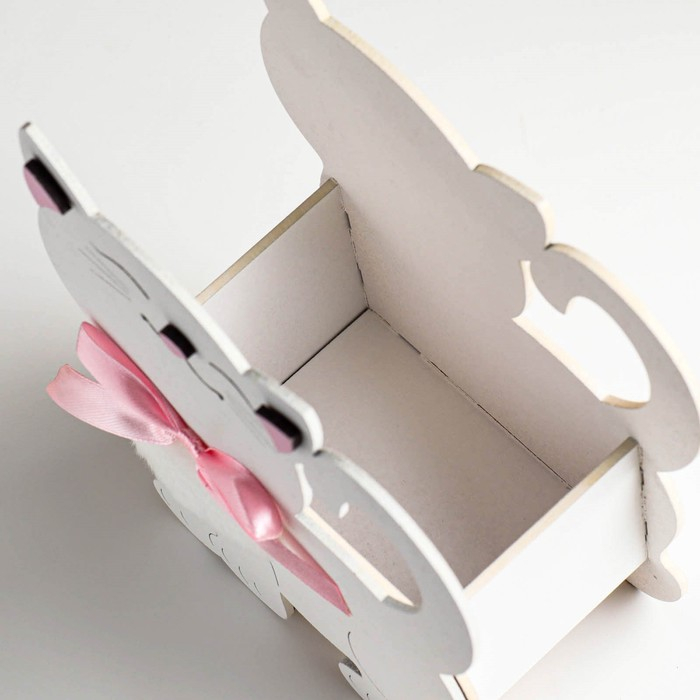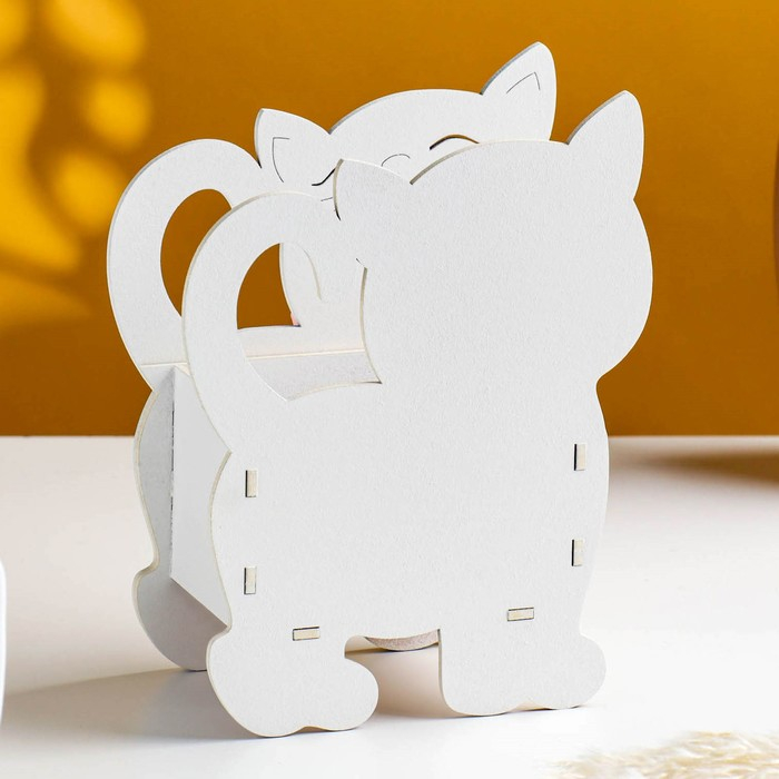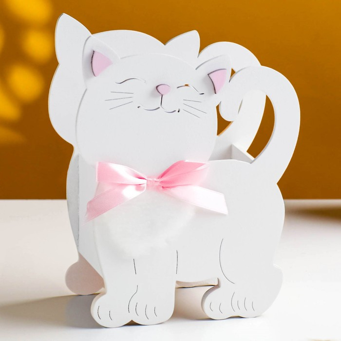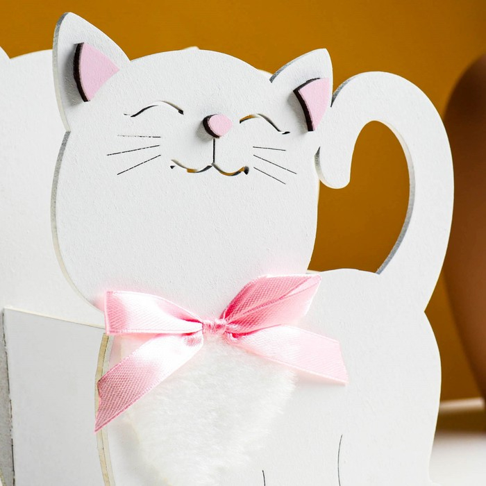 Кашпо деревянное "Котик" 14,5х7х18,5 см белый