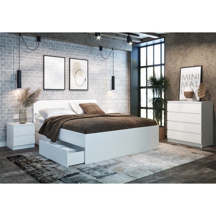 Кровать 1600 с ящиками и основанием Мадера, с/м 1600х2000, Белый