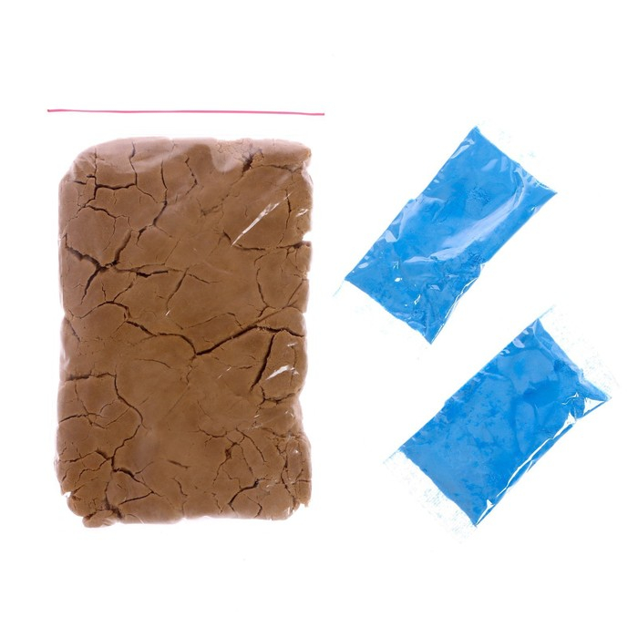 - Поставьте контейнер на ровную поверхность и наполните его кинетическим песком, сформируйте из него остров, который будет разделять слайм и орбизы.