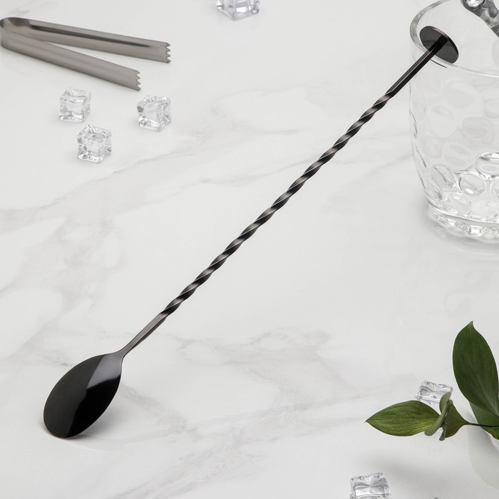 Ложка барная с мадлером из нержавеющей стали, длина 32 см, цвет чёрный