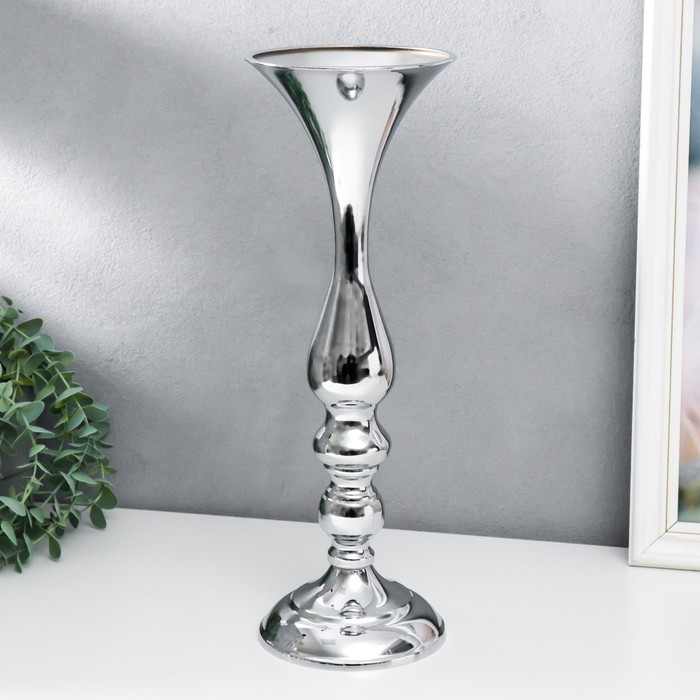 Подсвечник металл на 1 свечу "Изящный" серебристый 38х13х13 см