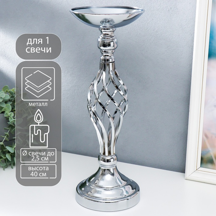 Подсвечник металл на 1 свечу "Сплетение" серебро 40х14х15 см