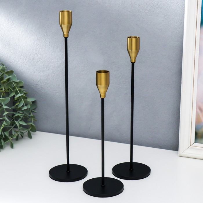 Подсвечник металл "Гало" набор 3 шт чёрный с золотом 8х8х22,5, 8х8х27,5, 8х8х32,5 см