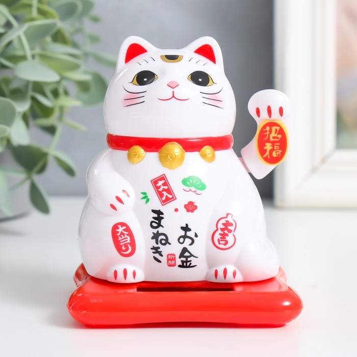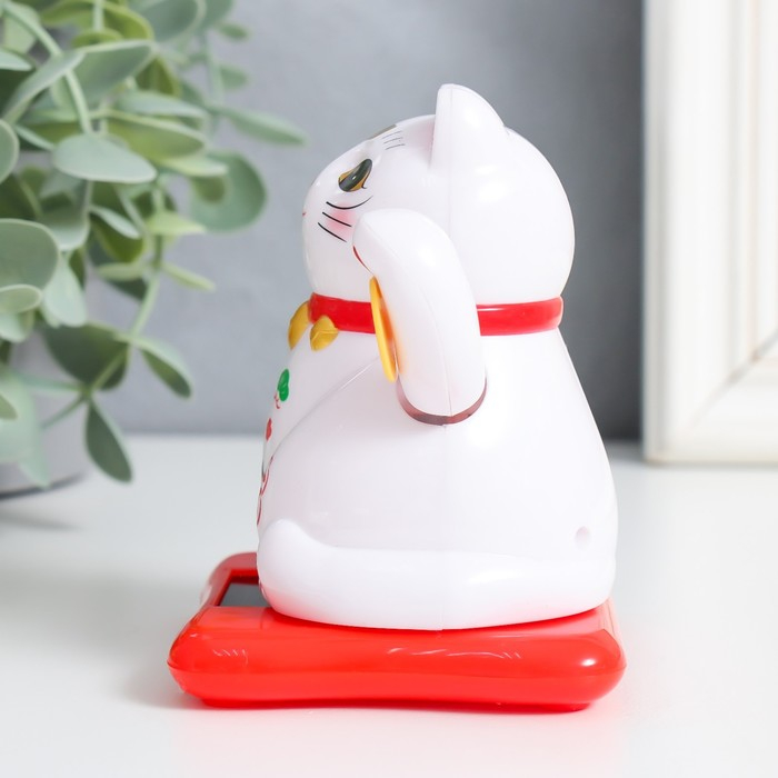 Маятник пластик от солн. батареи "Кот манэки-нэко, ошейник с бубенцами" белый 9,5х10х9,5 см 735357