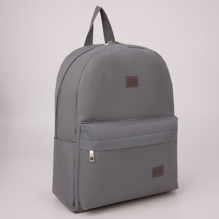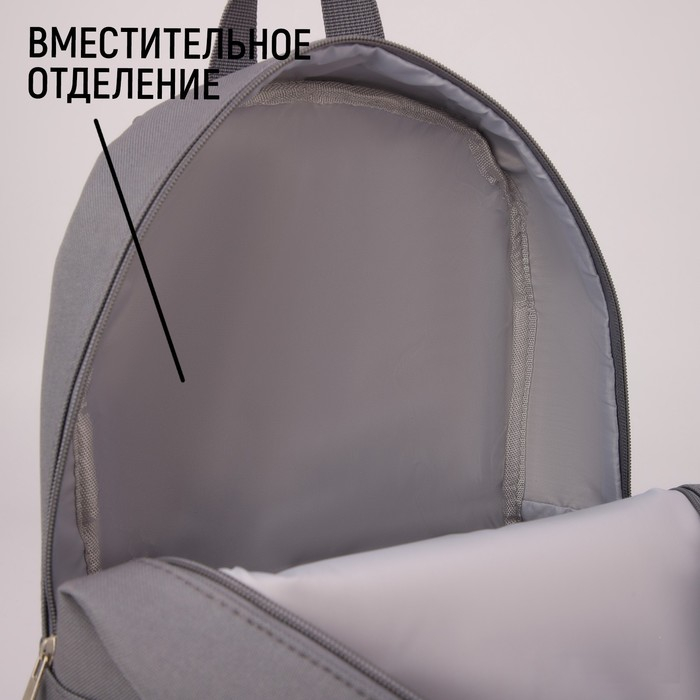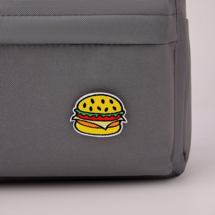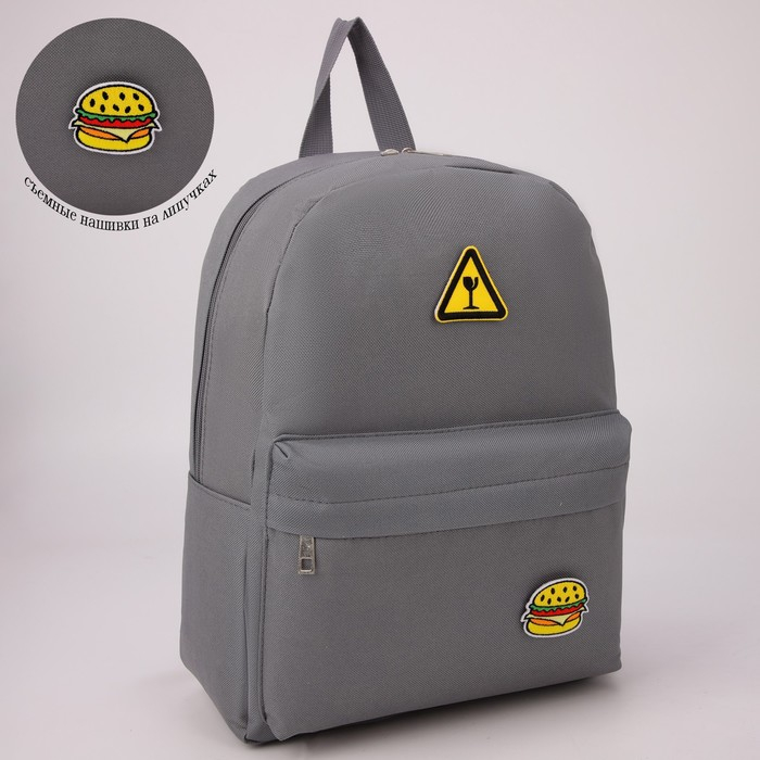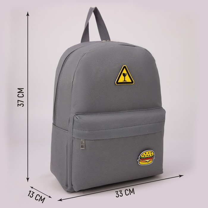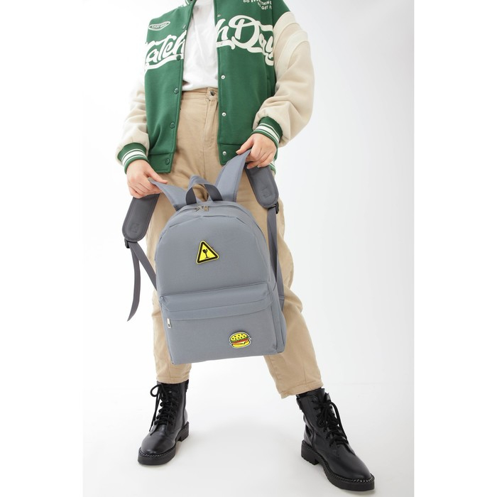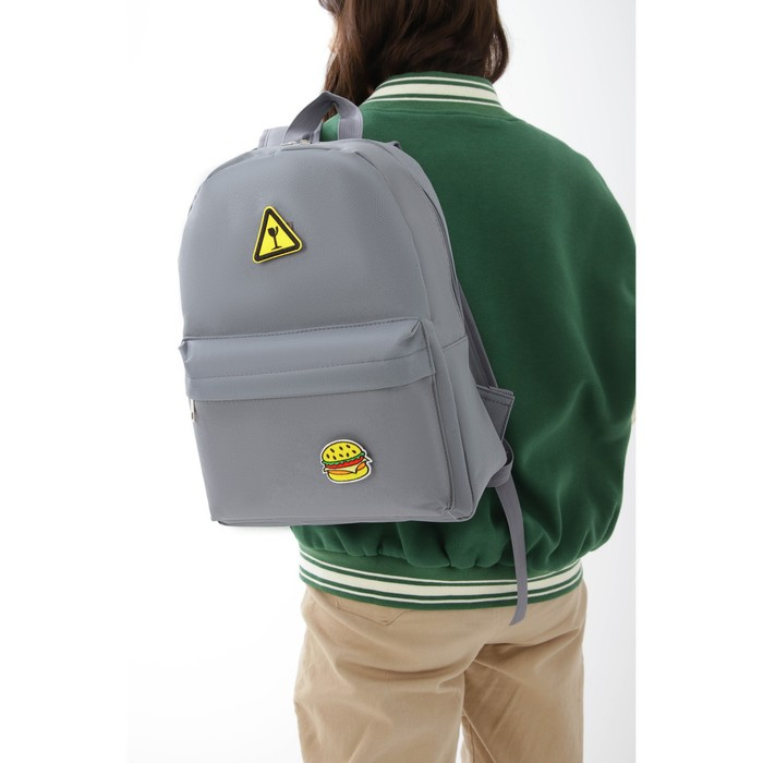 Рюкзак школьный текстильный «Значки», 37 х 33 х 17 см, с липучками, серый
