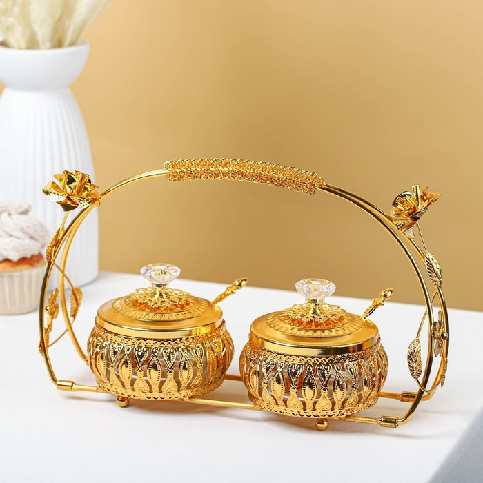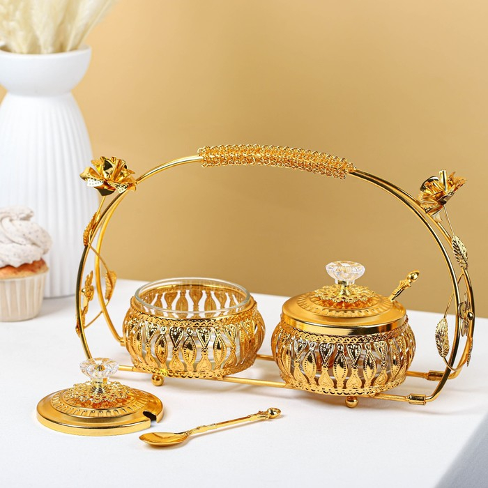 Набор сахарниц «Бонжур», с ложками на подставке, цвет золотой