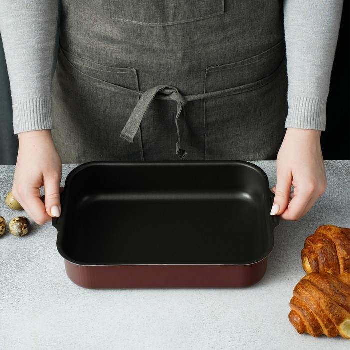 Противень Доляна Promo, 27×35 см, h=6 см, антипригарное покрытие, цвет бордовый