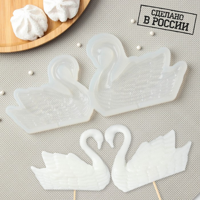 Силиконовый молд для леденцов и шоколада «Лебеди», h=8 см, h=9 см, цвет прозрачный
