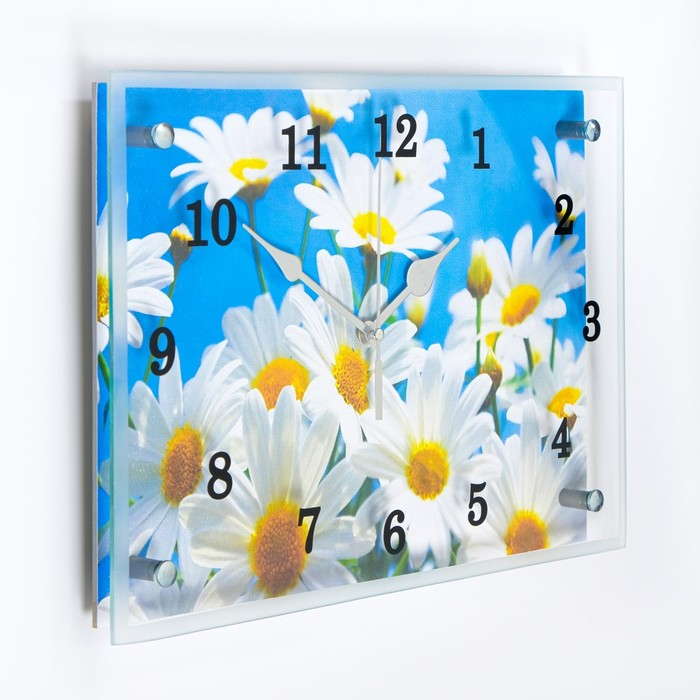 Часы-картина настенные, интерьерные "Ромашки", бесшумные, 25 х 35 см