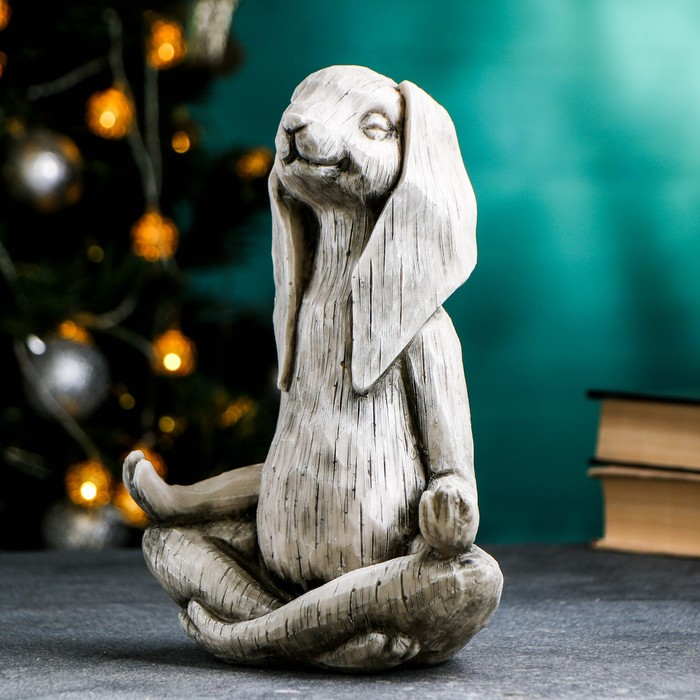 Копилка "Заяц йог" 25х19х10см, серый камень