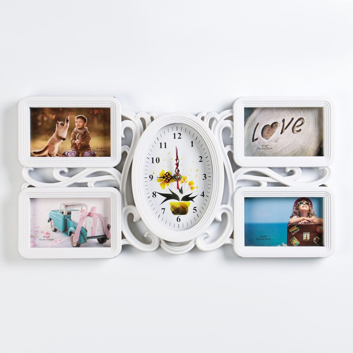 Часы настенные интерьерные, фоторамка - коллаж "Цветок", бесшумные, 52 х 26 см, d-11 х 17 см