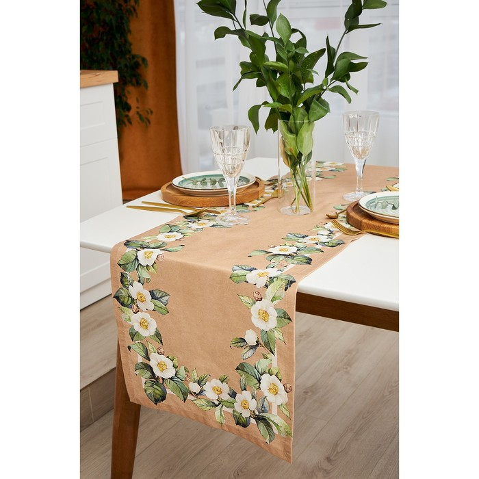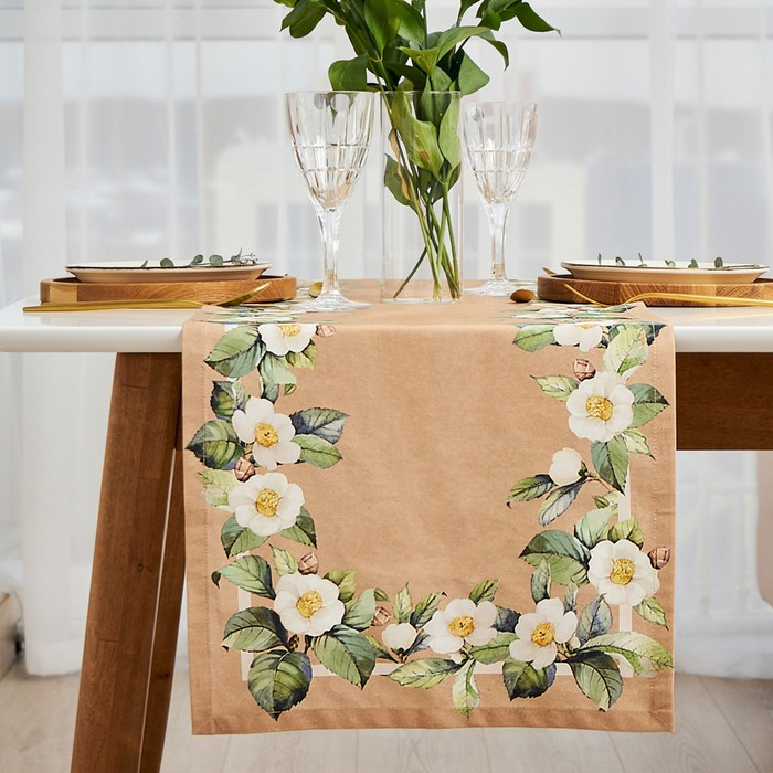 Дорожка на стол "Этель" Сamellia 40х146 см, 100% хлопок, саржа 190 г/м2
