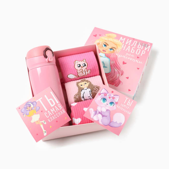 Подарочный набор термос и носки 3 пары KAFTAN "Красотка", р. 36-37 (22-24 см)