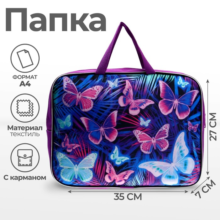 Папка с ручками текстильная А4, 350 х 270 х 70 мм, Calligrata "Бабочки"