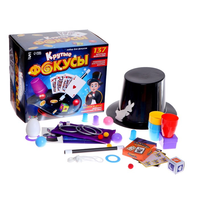 Повторяйте фокусы из инструкции, придумывайте свои и воплощайте их с помощью реквизитов из набора.
