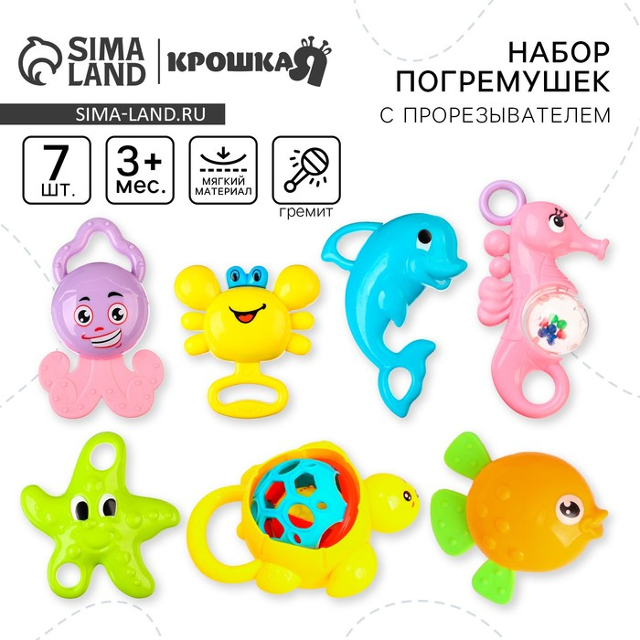 Набор погремушек «Игрушки малыша», с эластичными элементами, 7 шт, Крошка Я
