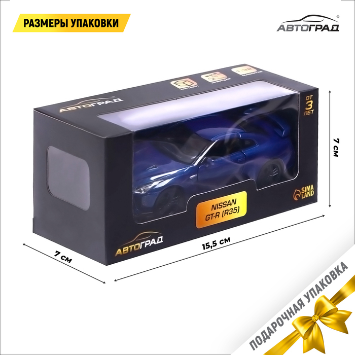 Машина металлическая NISSAN GT-R (R35), 1:32, открываются двери, инерция, цвет синий