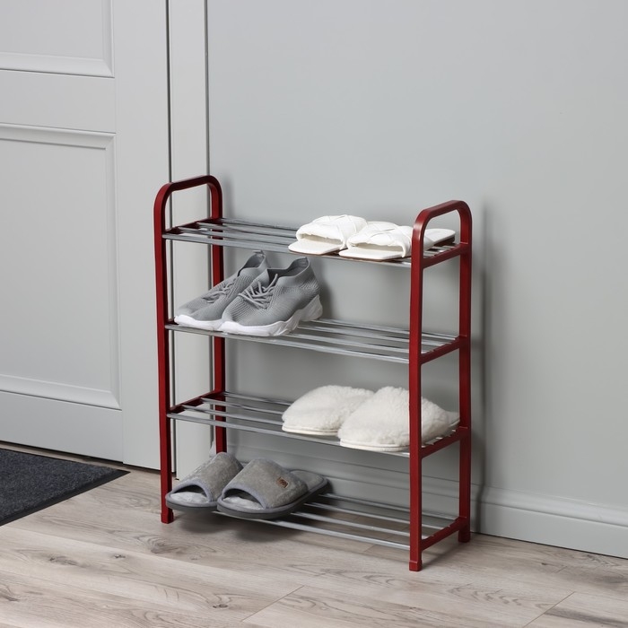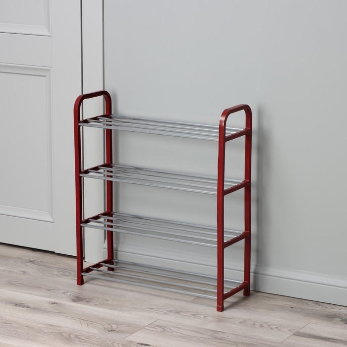 Обувница Доляна, 4 яруса, 50×19×59 см, цвет красный