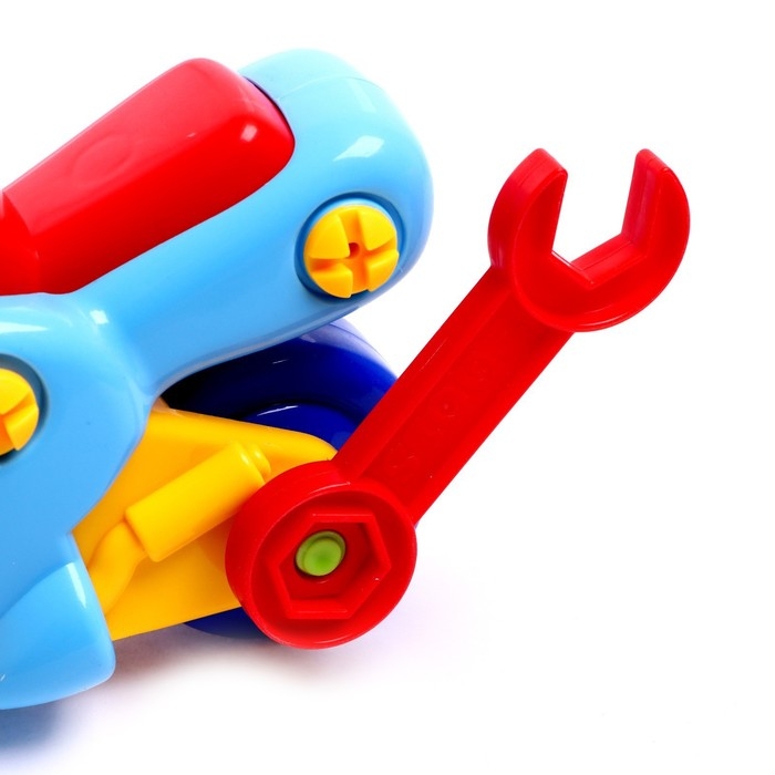 Ребёнок с помощью отверток, имеющихся в наборе, сможет сам собрать игрушку.