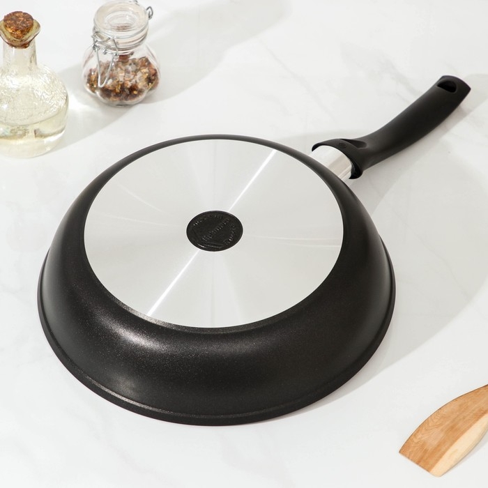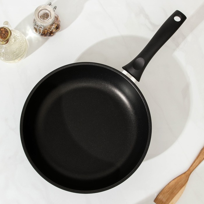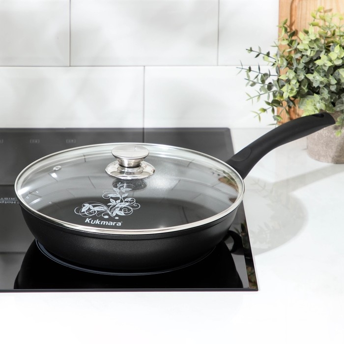 Сковорода «Традиция», 26×6 см, пластиковая ручка, стеклянная крышка, антипригарное покрытие, цвет чёрный