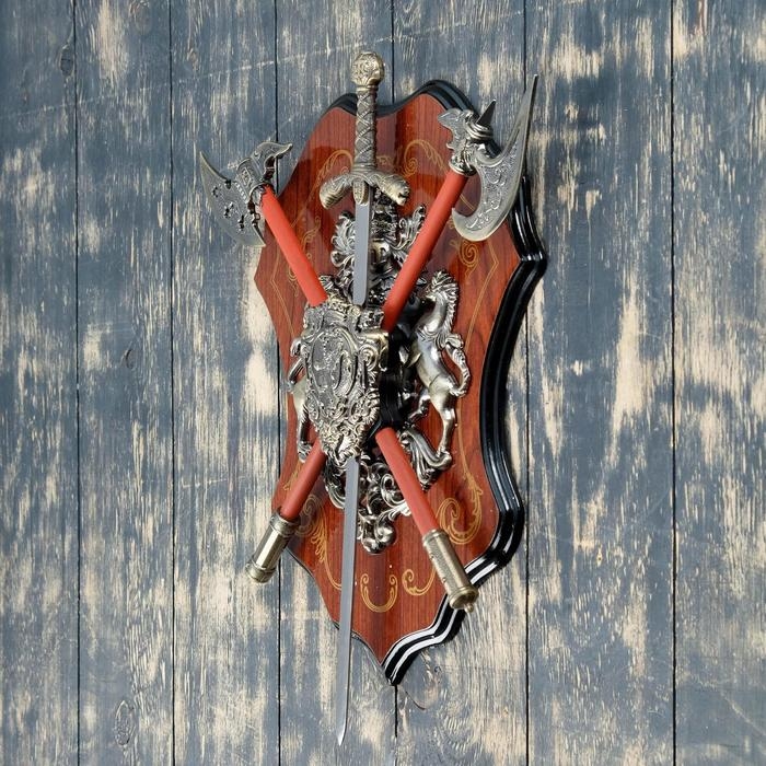 Среди мужских игрушек оружие занимает лидирующие позиции по популярности. Поэтому неудивительно, что мечи, клинки, топоры и прочие воинские атрибуты часто используются в интерьере. Это не просто элемент декора, это символ власти и силы. Такой аксессуар подойдёт для рабочего кабинета или «берлоги».