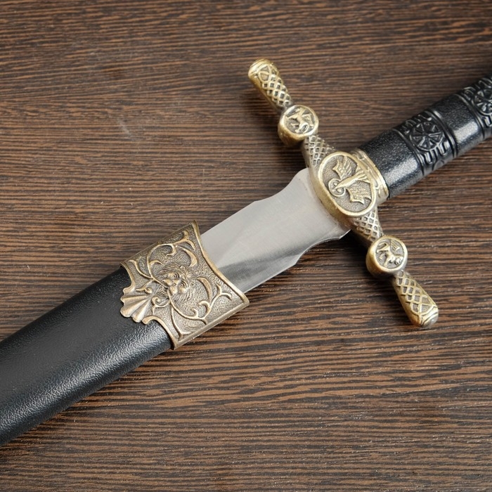 Сувенирный меч, прямой с резьбой по лезвию, ножны пустыня, 3 вставки металл, 40см