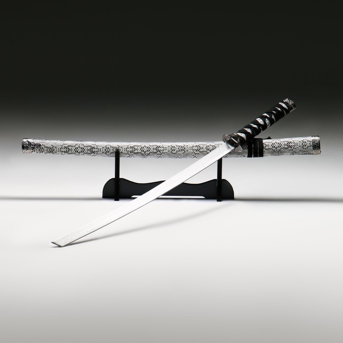 Сувенирное оружие «Катана», на подставке, серые ножны под змеиную кожу, 89 см