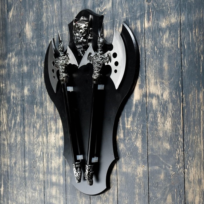 Среди мужских игрушек оружие занимает лидирующие позиции по популярности. Поэтому неудивительно, что мечи, клинки, топоры и прочие воинские атрибуты часто используются в интерьере. Это не просто элемент декора, это символ власти и силы. Такой аксессуар подойдёт для рабочего кабинета или «берлоги».