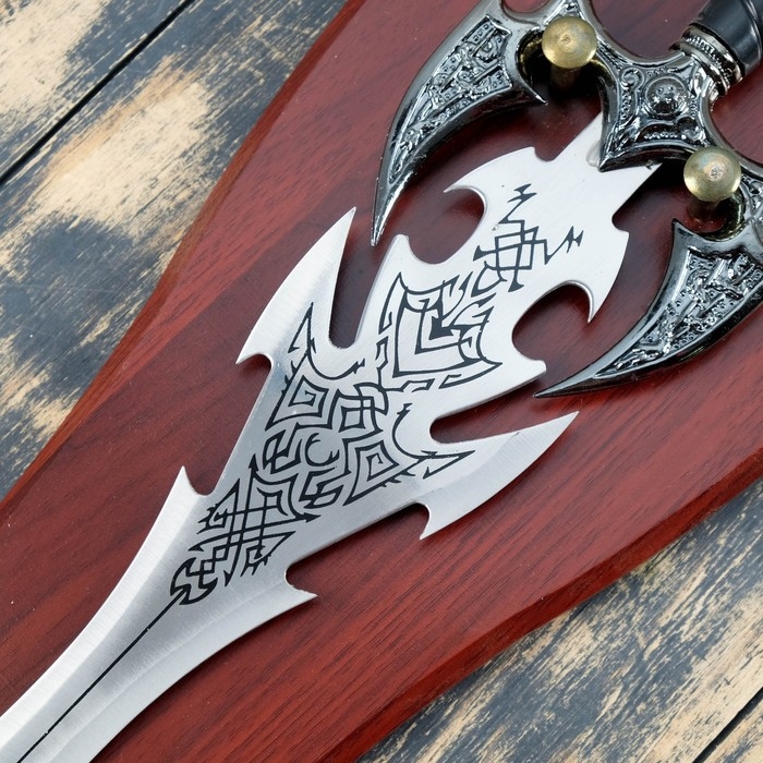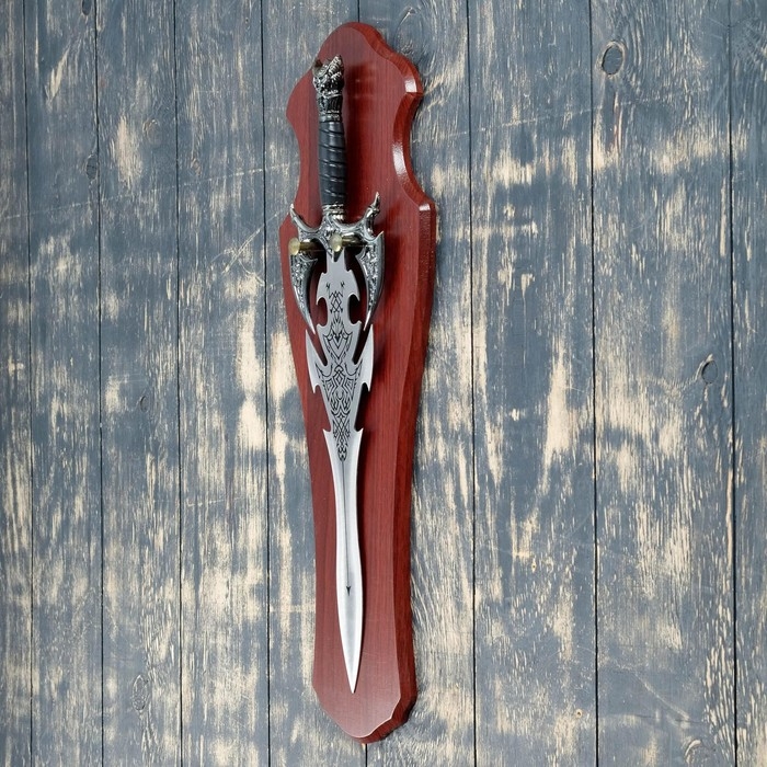 Сувенирный меч на планшете, резное лезвие, рукоять с головой дракона