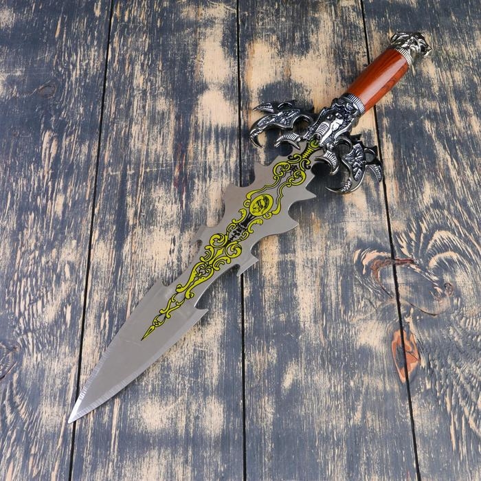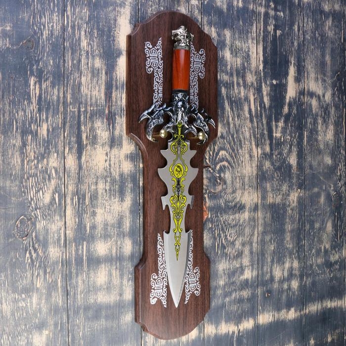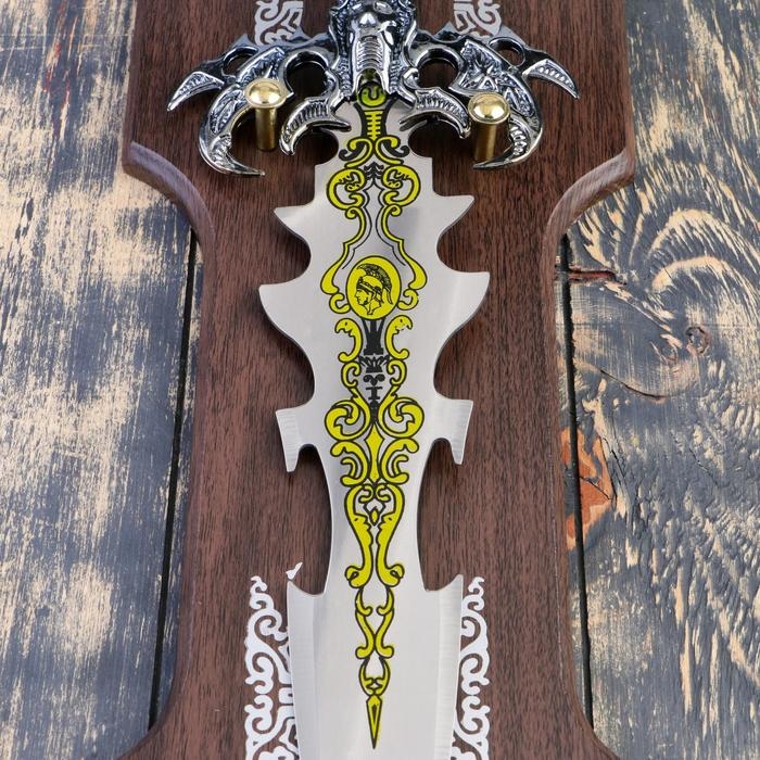 Сувенирный меч на планшете, резное лезвие, рукоять с головой дракона