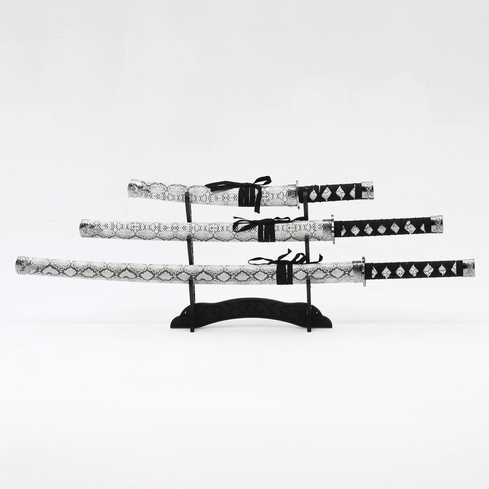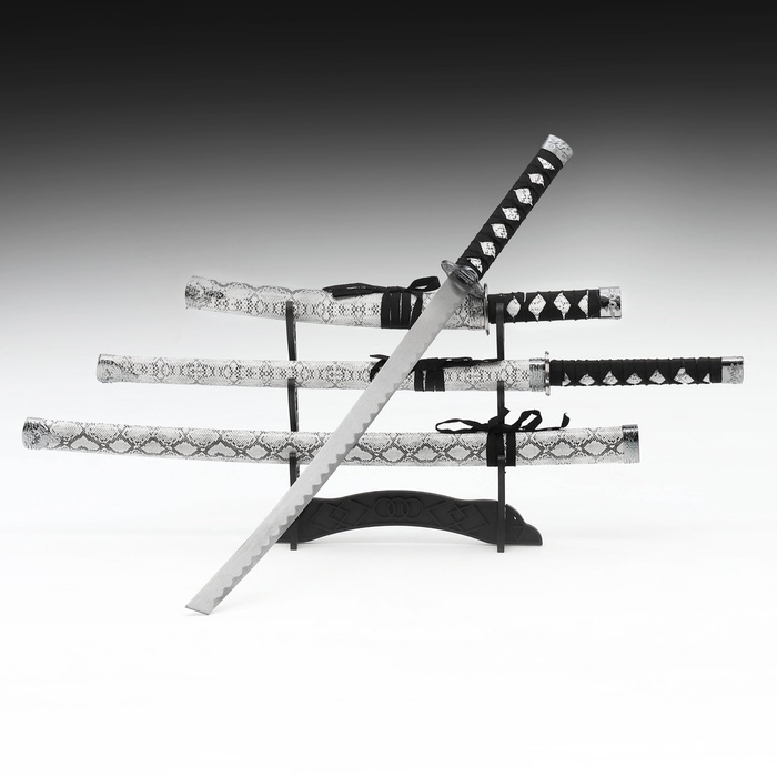 Сув. изделие катаны 3в1 на подставке, ножны кожзам, змея серая 47/70/89см