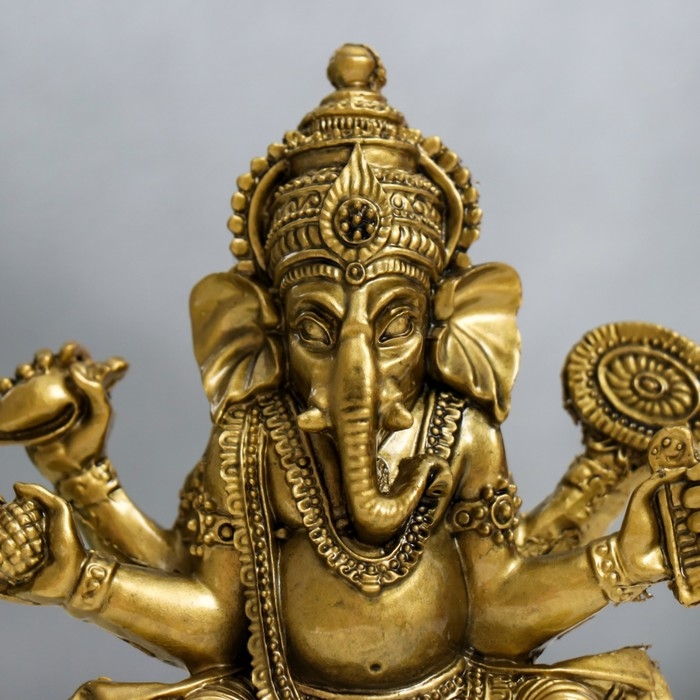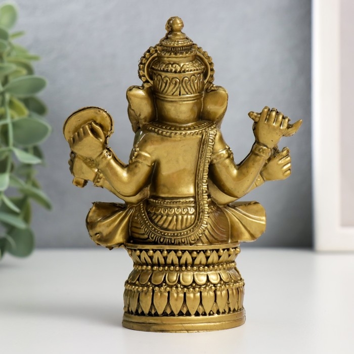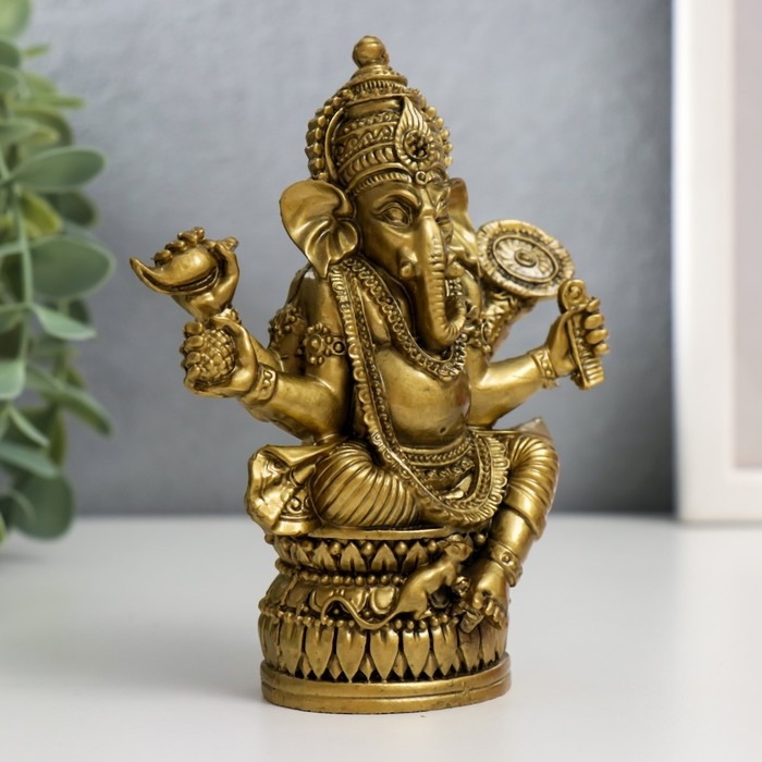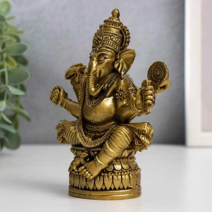 В учении фэншуй нэцкэ бронзовый "Ганеша на лотосе с зеркалом" 9,5 х 5 х 12,5 см покровительствует бизнесу, богатству, убирает препятствия с пути для тех, кто стремится обрести успех.