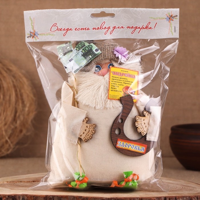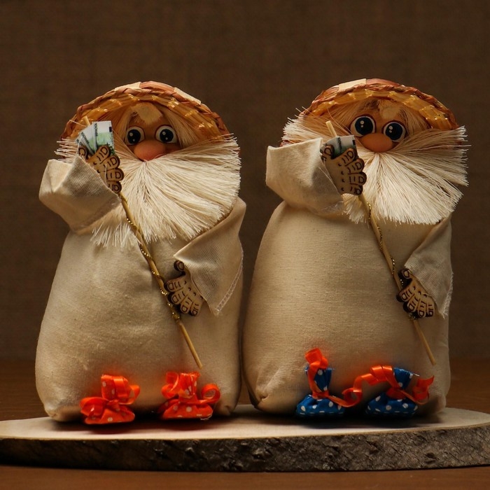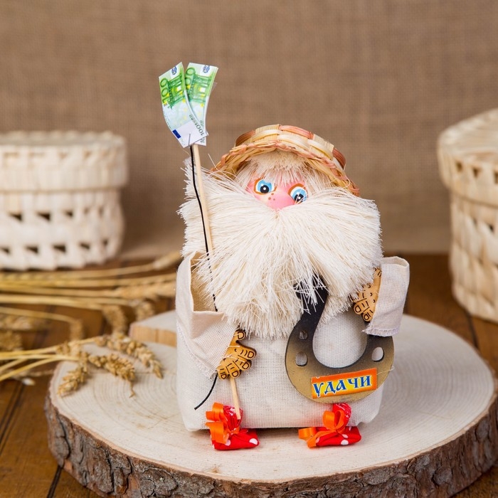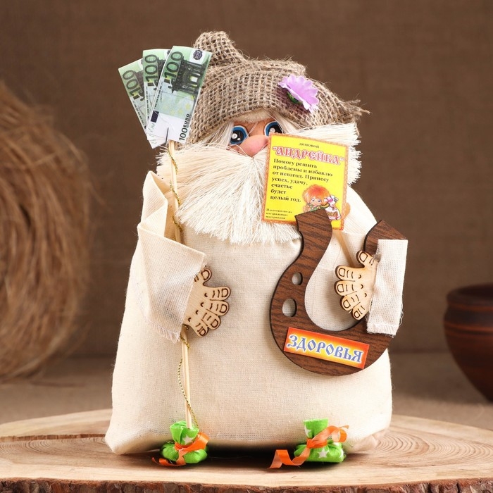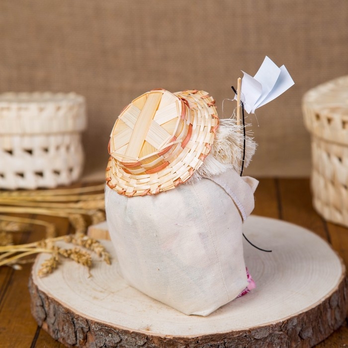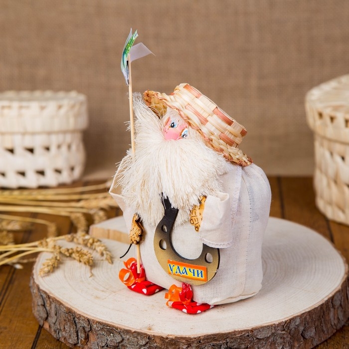 Оберег-домовой "Андрейка в соломенной шляпе, с денежным веером", 19х13х10 см МИКС
