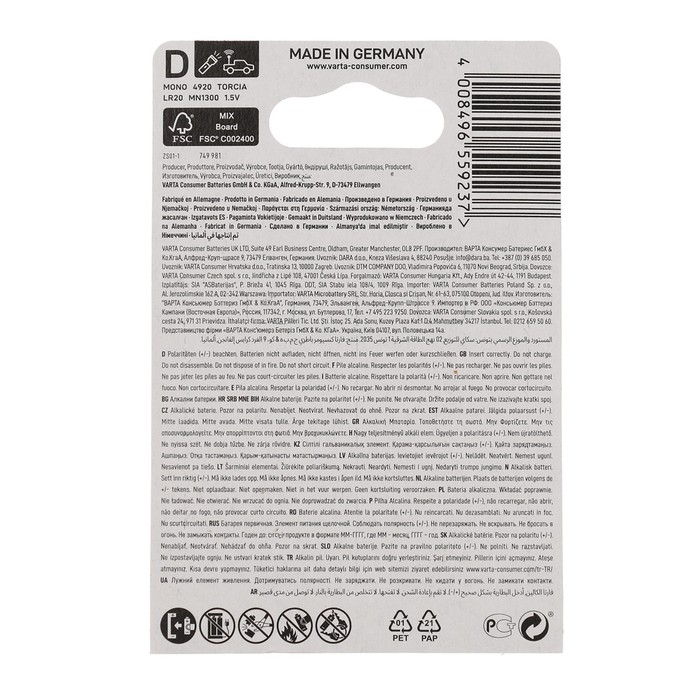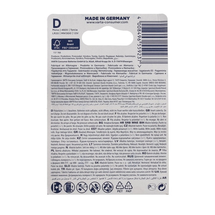 High Energy самая мощная батарейка из категории батареек VARTA. Она была специально разработана для использования в устройствах с высоким потреблением. Благодаря упаковки с индивидуально вырубкой под каждую батарейку обеспечивается удобное использование и хранение.