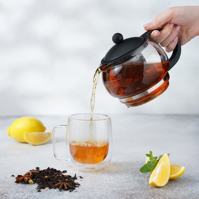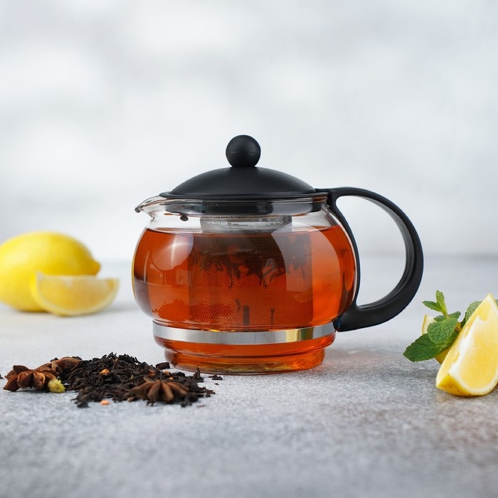 Чайник стеклянный заварочный «Вдохновение», 850 мл, с металлическим ситом, цвет чёрный
