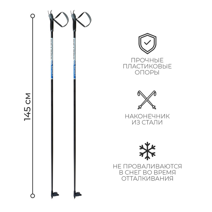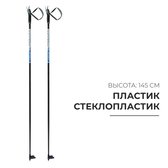 Палки лыжные стеклопластиковые, длина 145 см, цвета МИКС