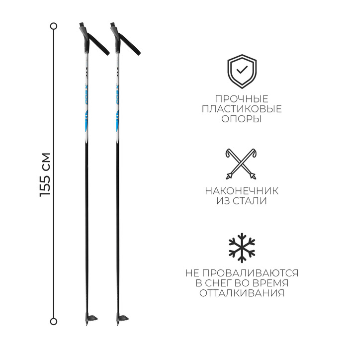 Палки лыжные стеклопластиковые, длина 155 см, цвета МИКС