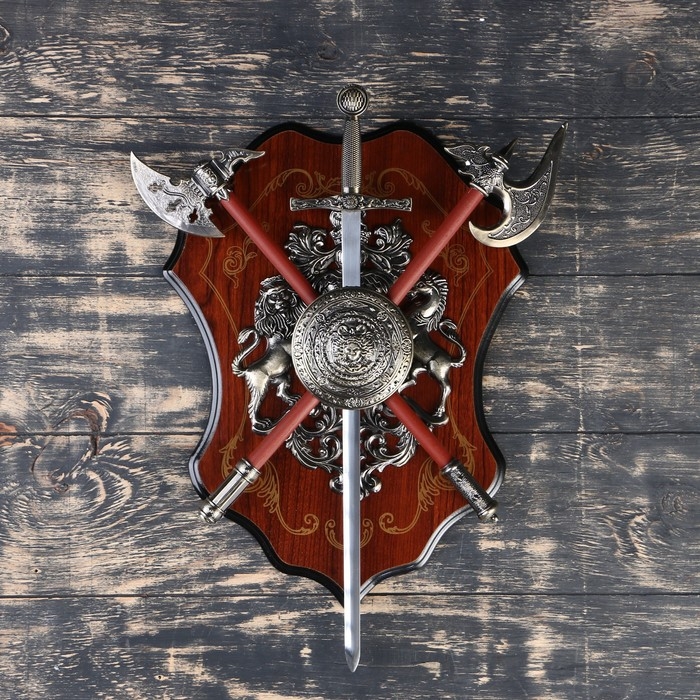Среди мужских игрушек оружие занимает лидирующие позиции по популярности. Поэтому неудивительно, что мечи, клинки, топоры и прочие воинские атрибуты часто используются в интерьере. Это не просто элемент декора, это символ власти и силы. Такой аксессуар подойдёт для рабочего кабинета или «берлоги».
