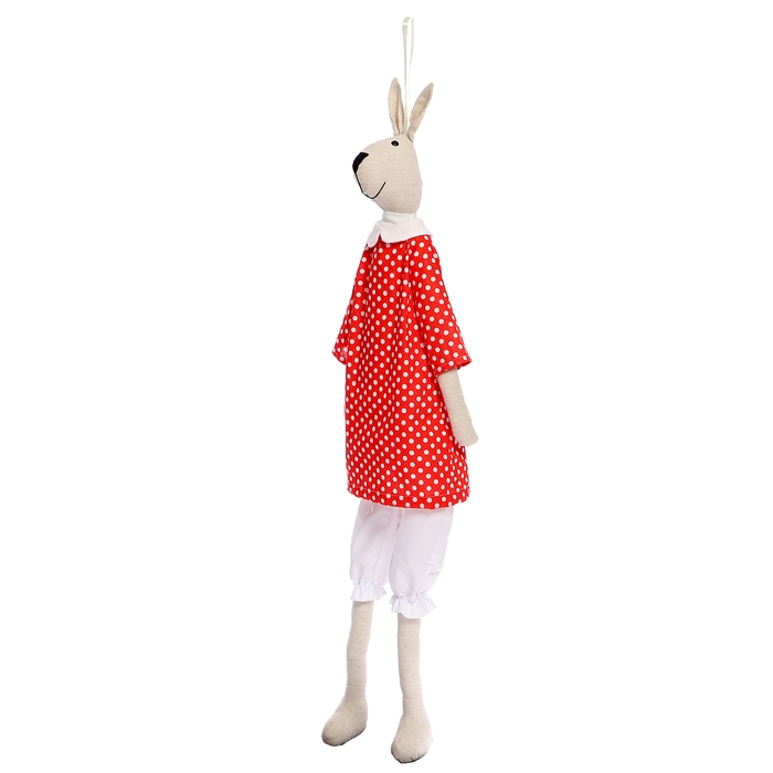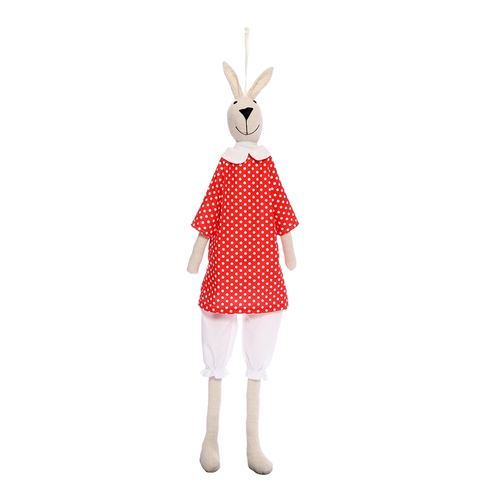 Модный стильный зайка Тильда в ярком наряде украсит интерьер детской комнаты, современной квартиры или креативной студии. С ним в ваш дом войдут уют, тепло и благополучие. Игрушку можно подвесить с помощью аккуратной петельки.