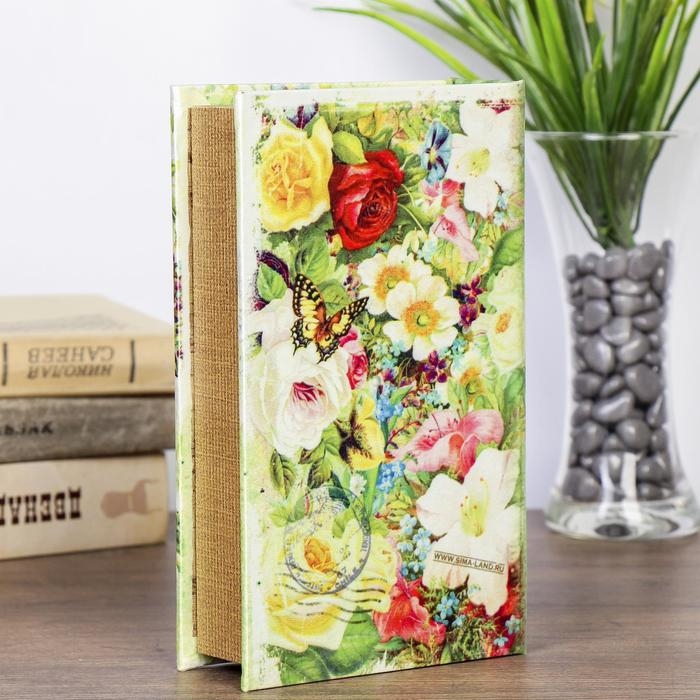 Сейф-книга дерево "Бабочки в цветах. Винтаж" кожзам 21х13х5 см