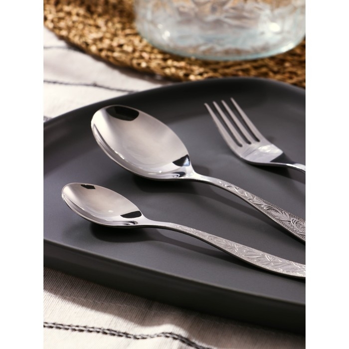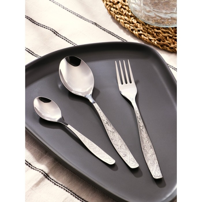Набор столовый «Уралочка», 18 предметов, толщина 2 мм, картонная коробка, цвет серебряный
