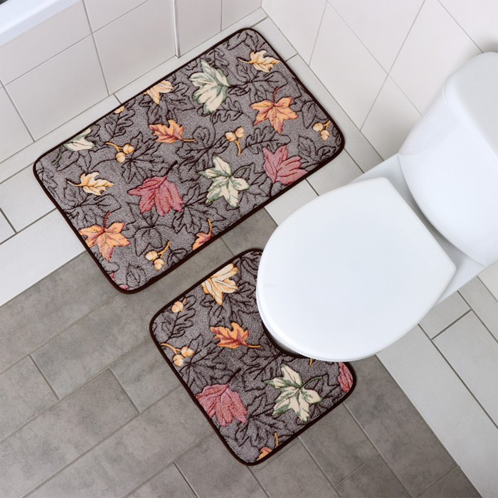 Коврики для ванной и туалета Доляна «Осенние листья», 2 шт: 40×50 см, 50×80 см