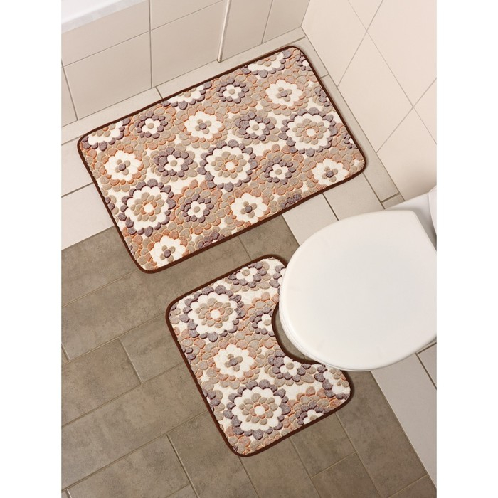 Коврики для ванной и туалета Доляна «Бежевая фантазия», 2 шт: 40×50 см, 50×80 см