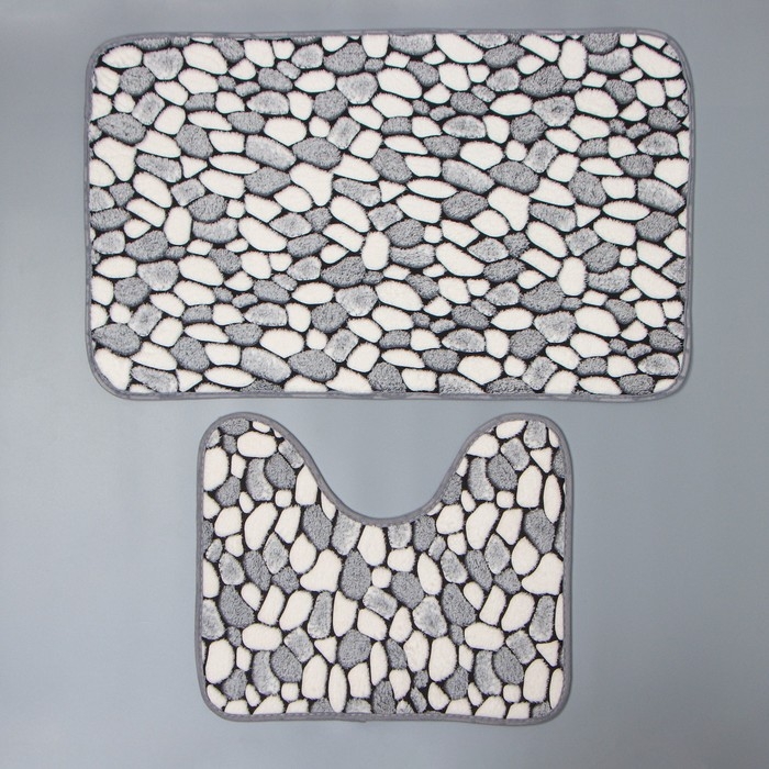 Набор ковриков для ванной и туалета Доляна «Галька», 2 шт, 40×49 см, 50×80 см