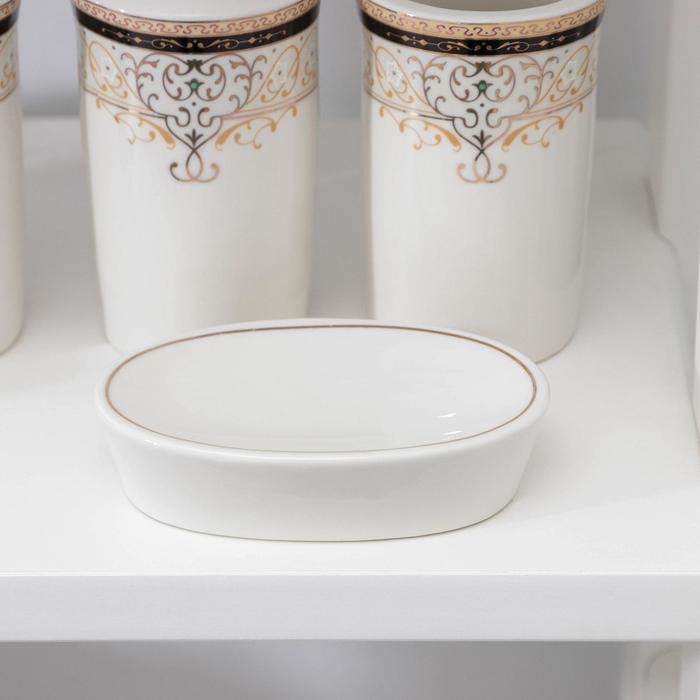 Набор аксессуаров для ванной комнаты Доляна «Золотая роскошь», 4 предмета (дозатор 250 мл, мыльница, 2 стакана), цвет белый