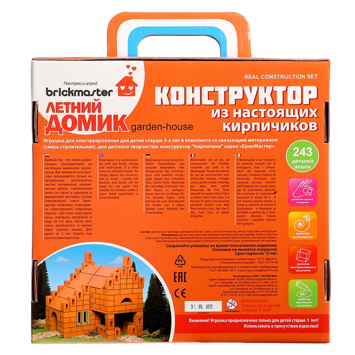 Brickmaster – это уникальный эко-конструктор для детей, состоящий из настоящих кирпичиков! Способствует развитию мелкой моторики, воображения, игровой деятельности, формированию сенсорных эталонов цвета, величины и формы, пространственного ориентирования, комбинаторных способностей.
